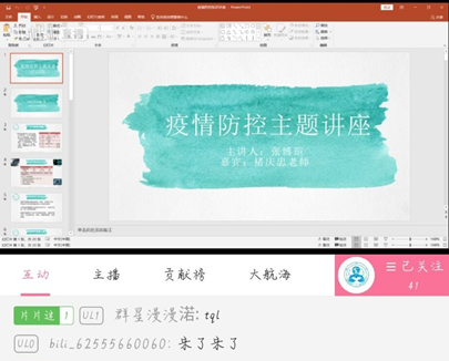 2020年5月20日晚6:10,由共青团PA集团官网委员会主办,pa集团官网入口地学社承办的“新冠肺炎”预防与救助知识讲座,在哔哩哔哩线上正式进行。