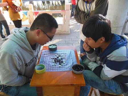 比赛刚刚开始,参赛选手就已经把自己的注意力高度集中到了比赛当中,对弈的双方你来我往,深思熟虑后在棋局上演绎出精妙的技艺。时间一分一秒的过去,比赛也渐渐进入了白热化,每一次选手的落子都会形成多变的局面,引发在场观众的深思。最后,经过四轮比赛的激烈角逐,象棋组、五子棋组和跳棋组的冠、亚、季军全部产生,王大磊主席和刘金月副主席与参赛选手合影留念。
