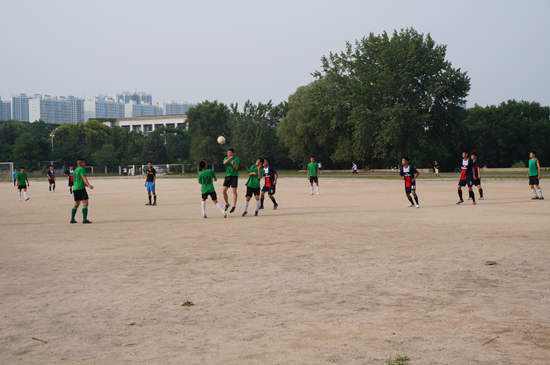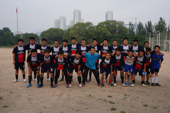 公司足球队员几乎布满了整个球场,我们的对手也不弱,要加以警惕,足球被快速传递着,球场上的运动员喘着大气,迅速奔跑着,尽管他们四肢疲乏,汗已经渗透了他们的脸颊,为了公司的荣誉,为了不让同学们失望,他们更加奋力地向成功之巅跑去。经过将近两个小时的激烈角逐,两支球队不分上下,最终裁判判定两支球队进行点球大战定输赢。最终,车辆公司足球队遗憾告终,获得2014年“燕大杯”甲级足球联赛第四名。