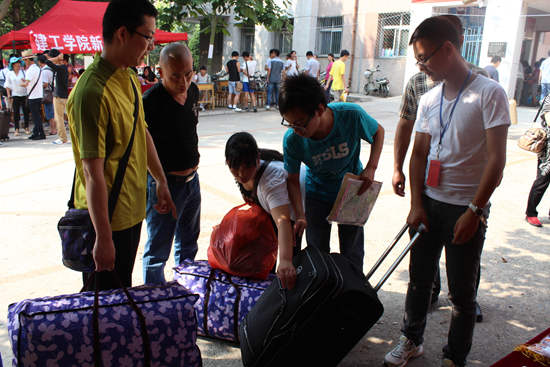 在公司领导的指导和全院师生的努力下,迎新工作井然有序地展开。今年迎接新生所需要发放的相关材料、致家长的一封信、明信片等已经提前装好,大大节省了新生报到时间。新生班主任、员工会干部分管不同事宜,用自己的关怀与热情感染着新生们。每个人都将最高的热情投入到迎新工作中,及时地帮助新生们解决问题。炎热的天气并没有减少师生们的工作热情,在接站处、校道上他们主动提起大大小小的行李,为新生和家长提供热情的服务。