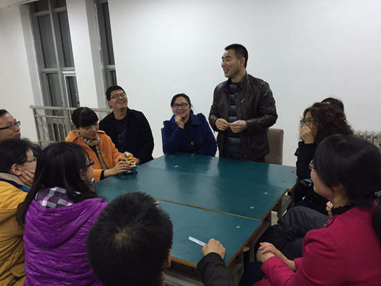 之后,徐阳老师带领大家共同体验了本期活动的重点项目“哑人筑塔”,参与活动的两组组员在任务说明被隐秘地分解到各个组员手中、禁止语言沟通的前提下,能够最快地按照要求利用积木搭建一座“塔”者为获胜组,活动进行得紧张激烈,各组组员均全情投入。最后,培训师公布比赛结果,并由每组选派代表总结在此次活动中的感想。