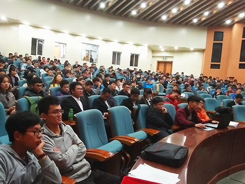 开始为表演赛,对辩双方用风趣的语言、机智的谈吐完成了此次辩论,引起了观众阵阵热烈的掌声。表演赛在观众一片叫好声中落下帷幕。在公司齐杰同学的优美歌声《南山南》中“车能杯”辩论赛决赛正式拉开了帷幕。先通过一段精彩的视频向观众介绍了对辩夺冠的两支队伍,分别是15级车辆工程五班与15级车辆工程卓越班,双方就“当今社会需要德治还是法治”这一辩题展开的辩论,双方你来我往,唇枪舌剑,精彩纷呈,高潮迭起,都展示了各自的风采,车辆工程五班以微弱劣势遗憾输给了车辆工程卓越班。接着举行了颁奖仪式,决赛嘉宾为获得全程辩手及决赛最佳辩手的同学分别颁奖,至此,“车能杯”辩论赛圆满落幕。