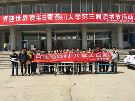 本次宣传活动包括“同住地球村、共享大自然”签名活动与主题摄影大赛、灾害与环保主题周末影院、捡拾垃圾志愿活动等系列宣传活动。这些活动得到了广大师生员工的积极响应,他们纷纷在条幅上签下了自己的名字,并向踊跃地学社投稿。本次摄影大赛共收集到作品80多份,从入围决赛的14份作品里,由全校师生投票选出了一二三等奖。其中,一等奖获得者为来自环境与化学工程公司过程装备与控制工程专业的张嘉琪同学。