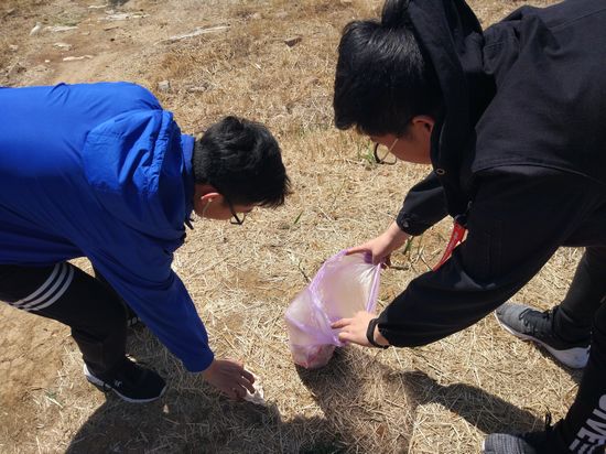 塔山公园捡拾垃圾(照片由包砚、张静提供)