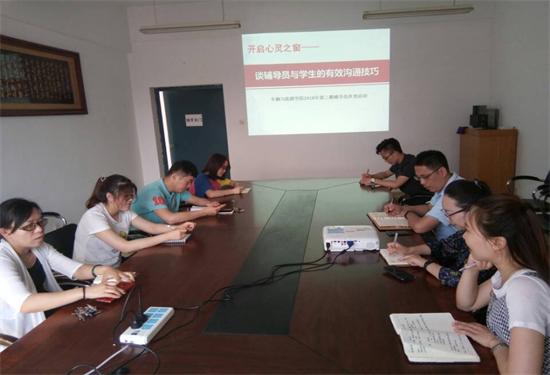本次活动由2015级辅导员高峰主持,他首先向大家介绍了本次活动选题的初衷和意义,并从传统沟通方式与新媒体沟通方式的异同、沟通中要注意的因素以及如何确定辅导员自身沟通风格三个方面启发大家开展讨论。杨春婧指出沟通要达到有效性应该首先确认沟通的目的,了解员工的背景,然后要根据沟通对象的具体情况采取不同的沟通方式。杨东峰强调辅导员一定要用心与员工沟通,让员工能够感受到真诚,并且在沟通时要注意倾听,从不同角度看待员工出现的问题,通过沟通积极有效地帮助员工解决实际困难。员工代表结合自己的成长经历,分别就他们认为有效性较好的沟通方式、辅导员可以关注与员工沟通的反馈效果等方面提出建议。大家积极参与讨论、畅所欲言,现场气氛热烈,活动结束时仍意犹未尽。