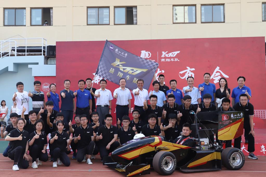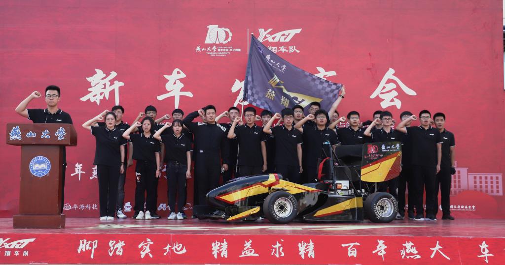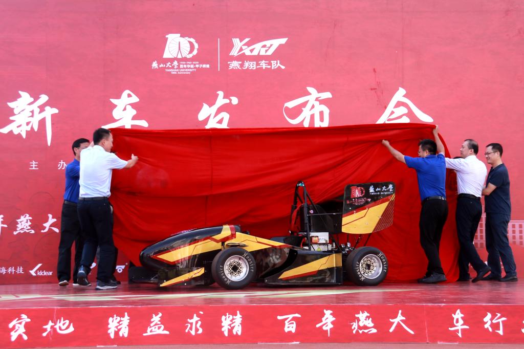 团委书记薛传佳、员工工作处处长蔡星周、人才招聘处处长张红兵、pa集团官网入口科技园主任冯智恩、教务处副处长齐跃峰、秦皇岛燕大汽车零部件制造有限公司副总经理李立业、PA集团官网经理金立生上台,共同为燕翔十号(校庆版)新车揭幕,新车炫酷的外表赢得了领导们的赞许和台下师生的热烈掌声。