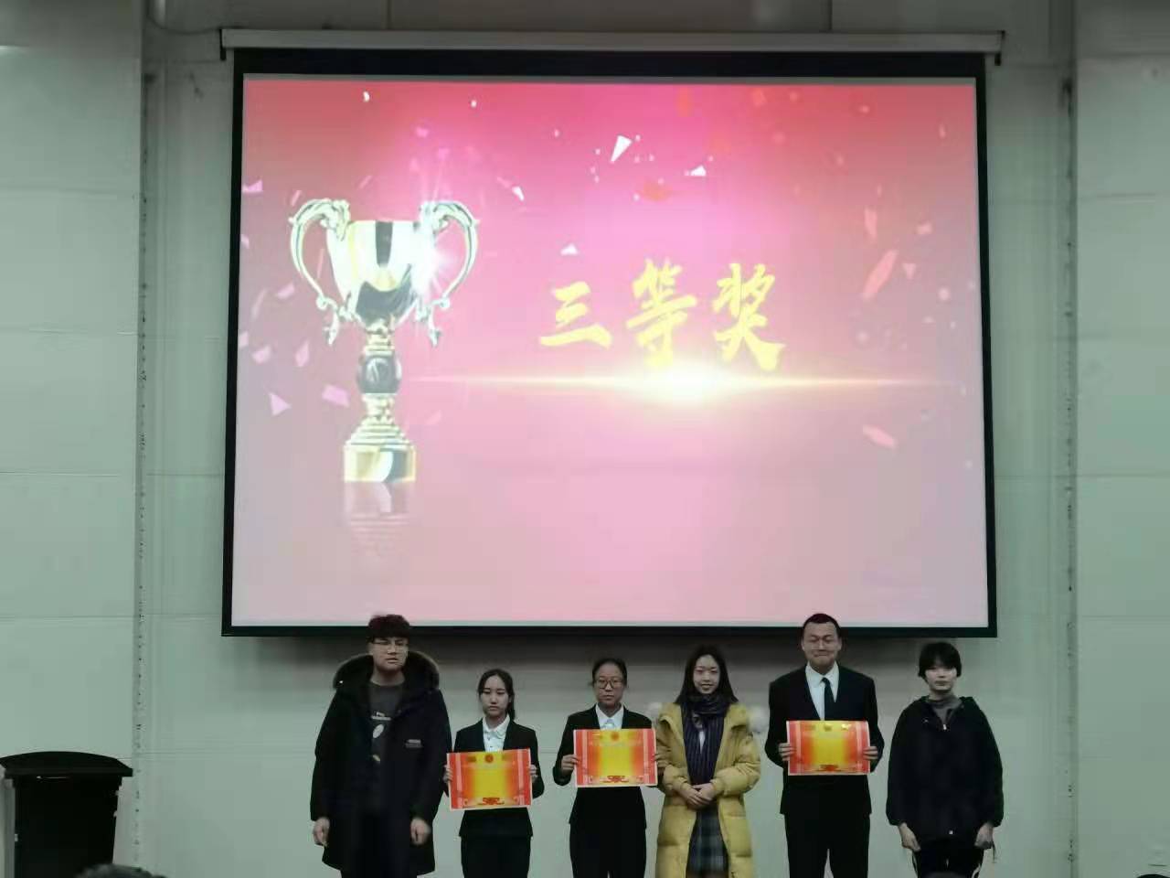 毛嘉军、赵宁、李慧欣主席为邵奇诺、刘玉佳、李笑天等3名同学颁发三等奖