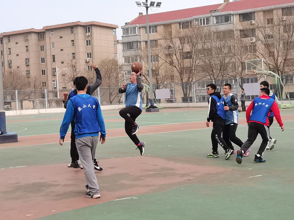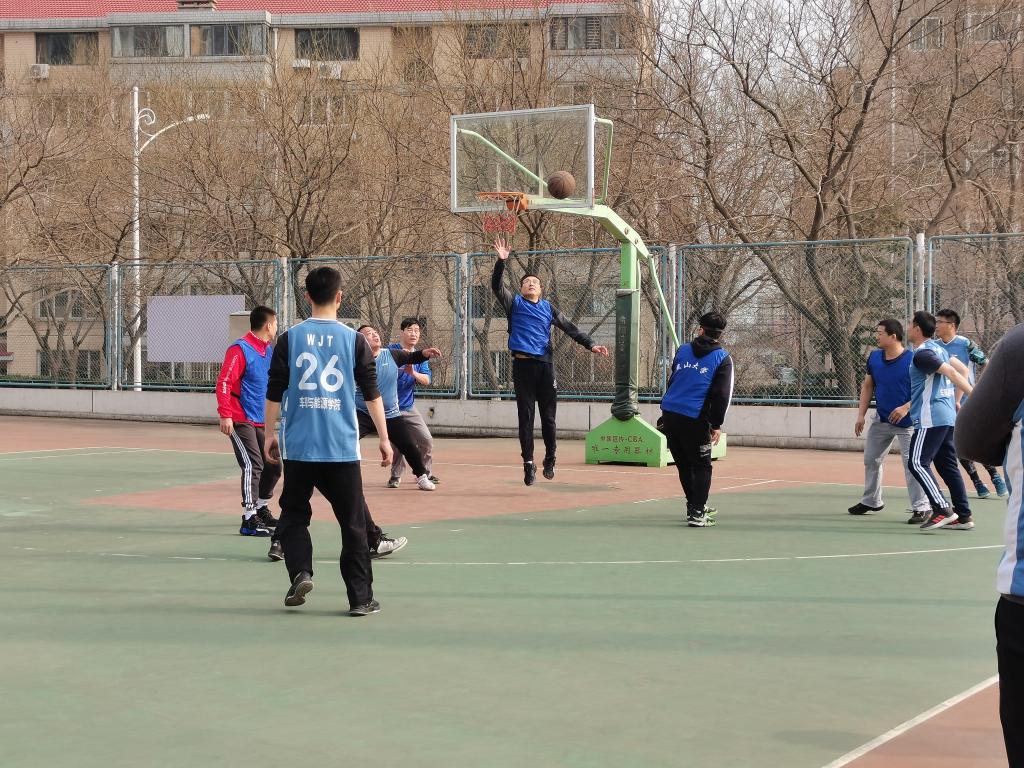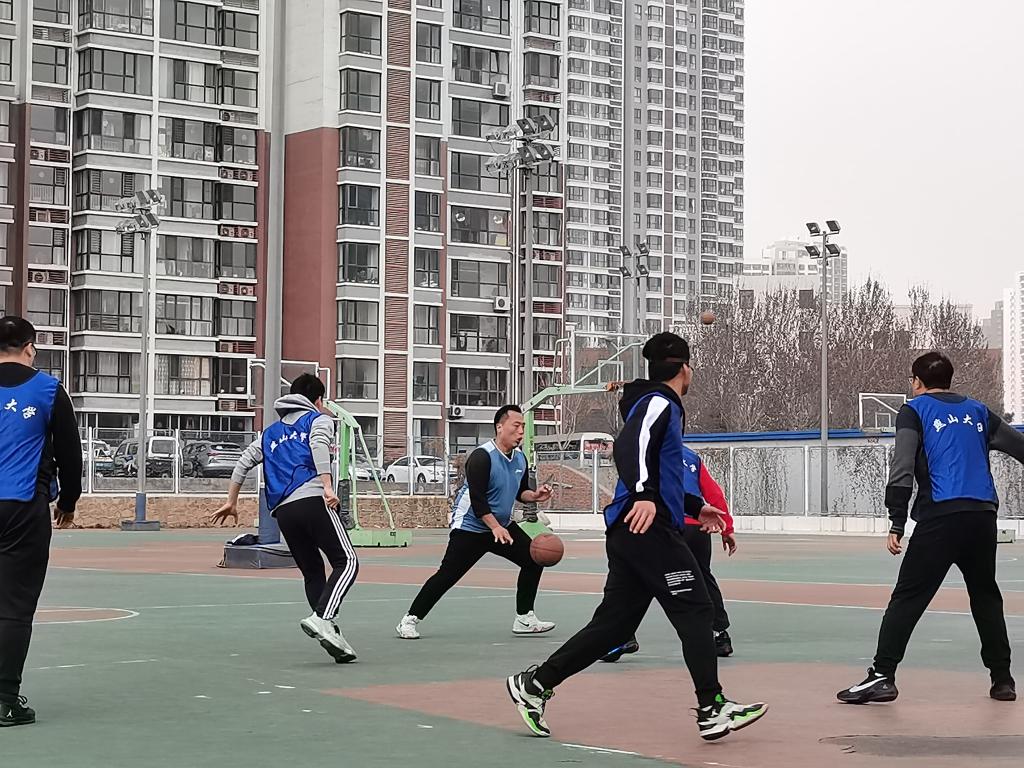 在这场篮球赛中,对阵双方教工秉持着“友谊第一,比赛第二”的原则,在工作人员和裁判的指挥下有序进行比赛。在乍暖还寒的时节,教工们用自己的行动体现出万物复苏的勃勃生机。篮球的每一次传导都是对队友的充分信任,每一次超远距离的投球都是教工们实力的展现,这个有些凉意的午后因教工们的奋力拼抢和热情奔跑而变得火热起来。