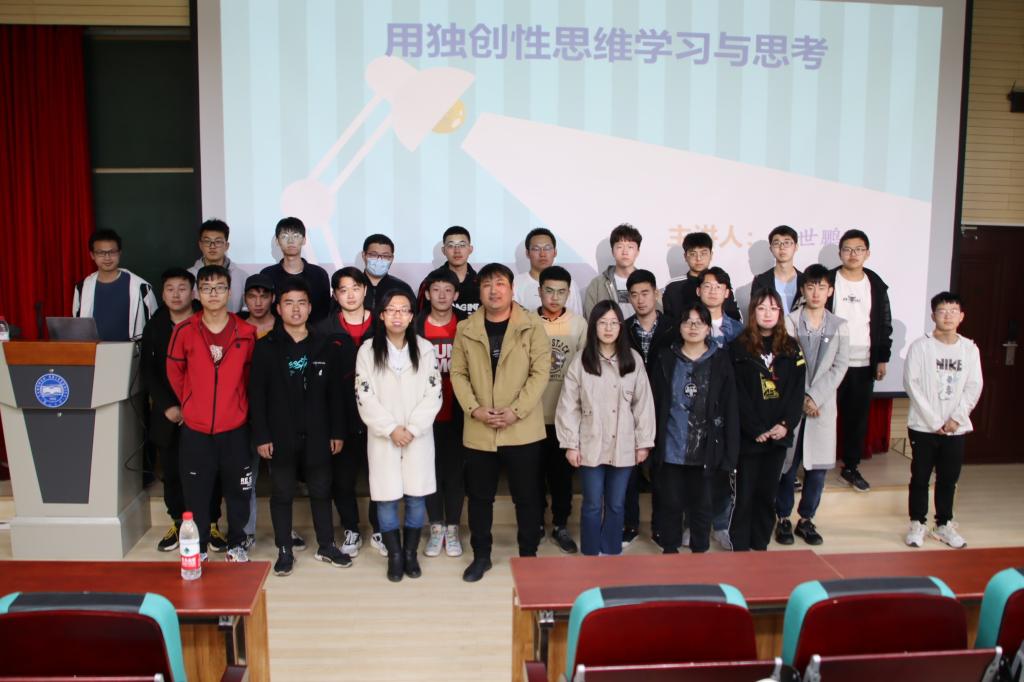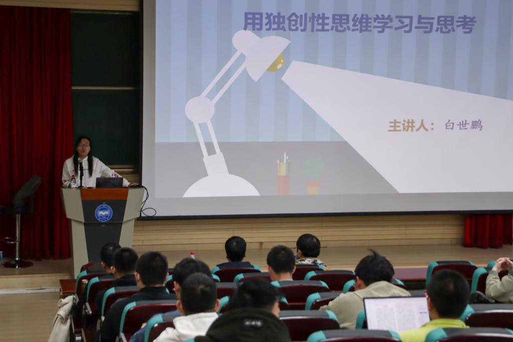 2021年4月17日下午14:30,PA集团官网2010届毕业生员工白世鹏在东校区第四教学楼109室开展主题为“用独创性思维思考与学习”的讲座,PA集团官网团委书记杨春婧、车辆工程系教授邸立明出席,公司本研员工参加。