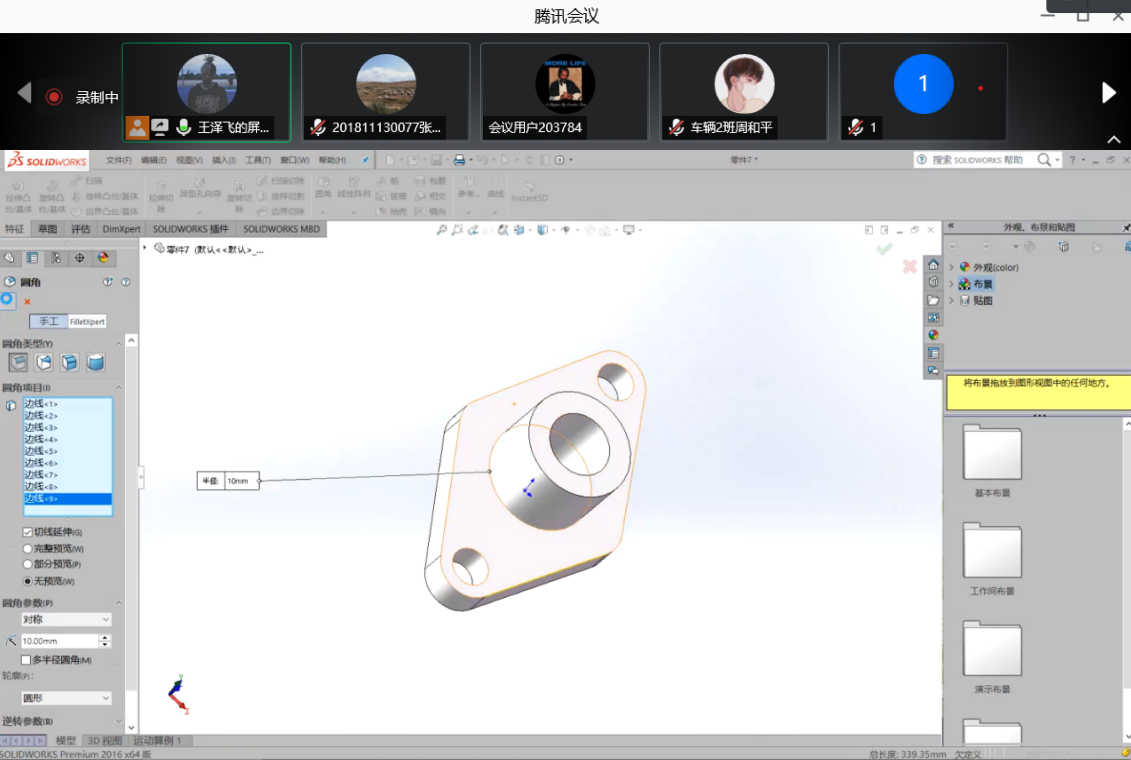 4月22日,由于疫苗接种等原因,也为了方便回看,SOILDWORKS技能培训在线上进行。来自机械工程公司的研究生王泽飞,以讲练结合的方式为参加SOILDWORKS培训的选手进行了SOILDWORKS草图设计和零件设计的讲解与演示。汽车爱好者协会在本次培训后发布了视频回放和练习示例来辅助员工进行学习。