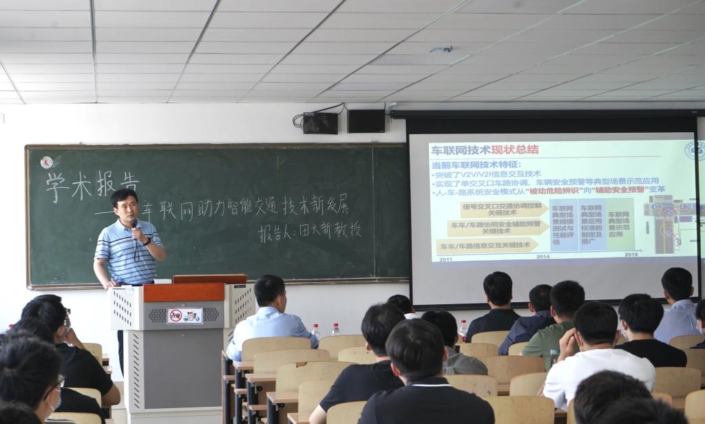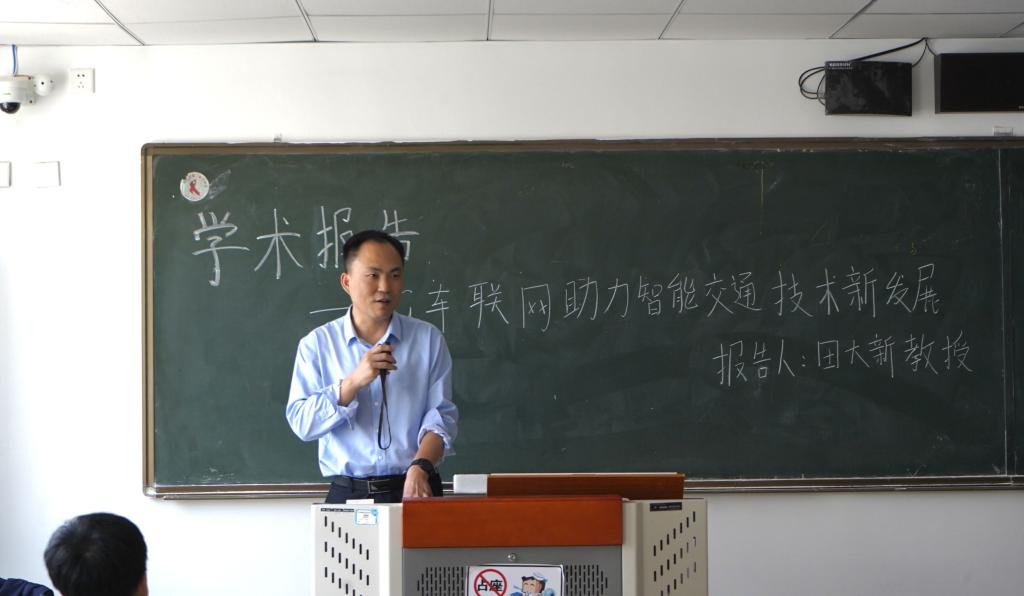 会上,田大新教授首先介绍了北京航空航天大学交通公司,介绍了公司的形成、发展和主要研究方向。随后,田大新教授向师生们详细介绍了车联网的背景、技术和现状。