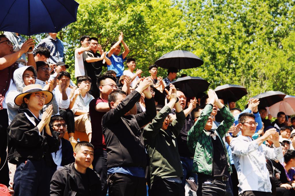 冠亚军决赛中,公司领导老师、足球队员工们和各年级同学们共同来到第一体育场为队员们加油助威。