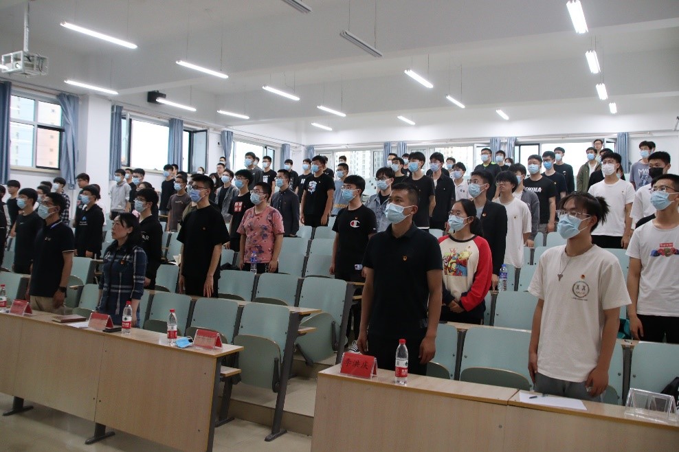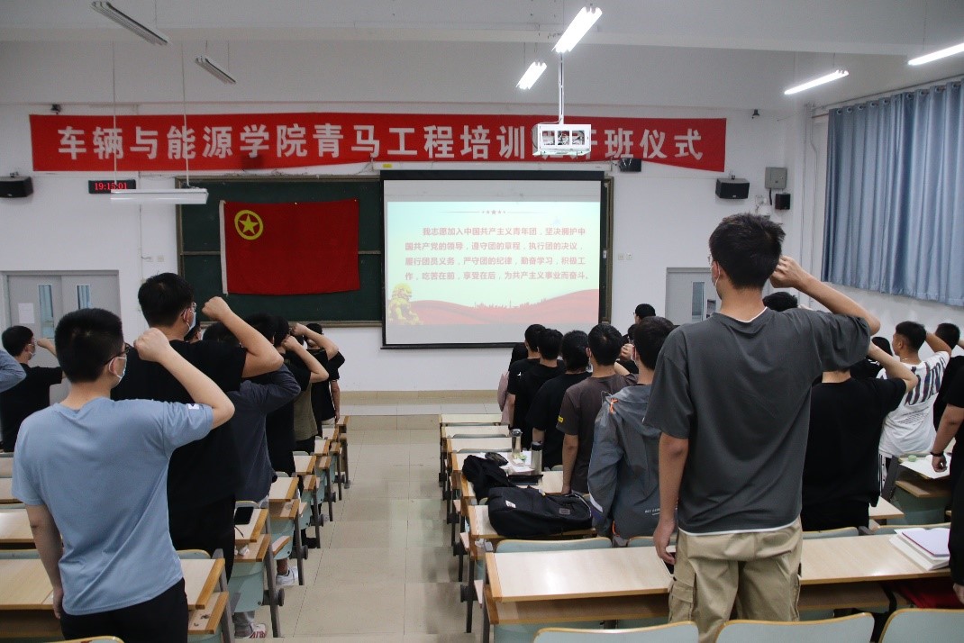 开班仪式上,全体新学员进行了团员宣誓,张雪松同学领誓。
