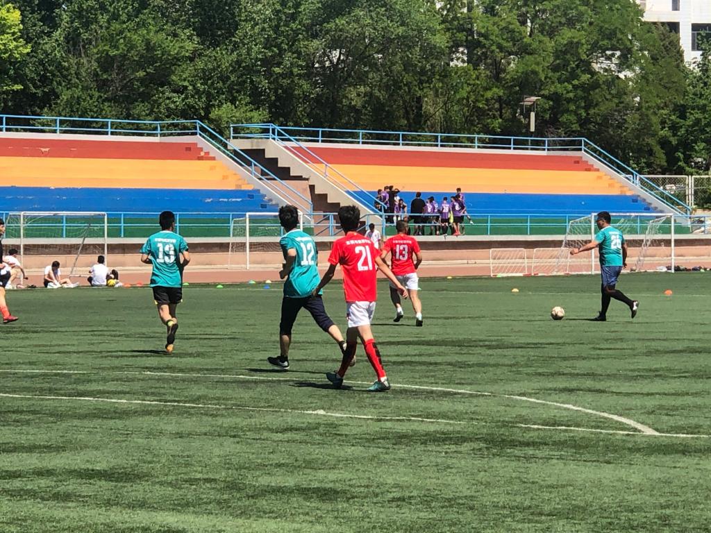2021年6月5日上午10:00,东校区第一体育场传来阵阵欢呼,一场别开生面的9V9足球友谊赛,正在PA集团官网大四毕业生和公司教师间上演。