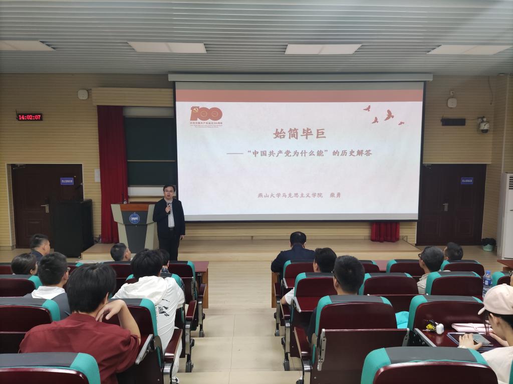 会上,柴勇从民族复兴进程中的百年党史、认识人类社会发展规律、认识社会主义建设规律、认识共产党执政规律四个方面进行全面系统阐述。讲座结合大量历史资料,理论与实践相结合,生动形象地为师生党员解答了马克思主义为什么行、中国特色社会主义为什么好、中国共产党为什么能的问题。