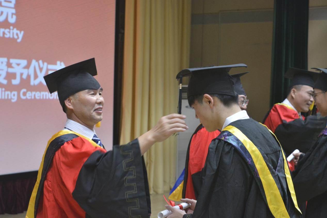 随后,经理金立生、公司党委书记张典范、副经理杨满平、副经理李昊为毕业生授予学位。