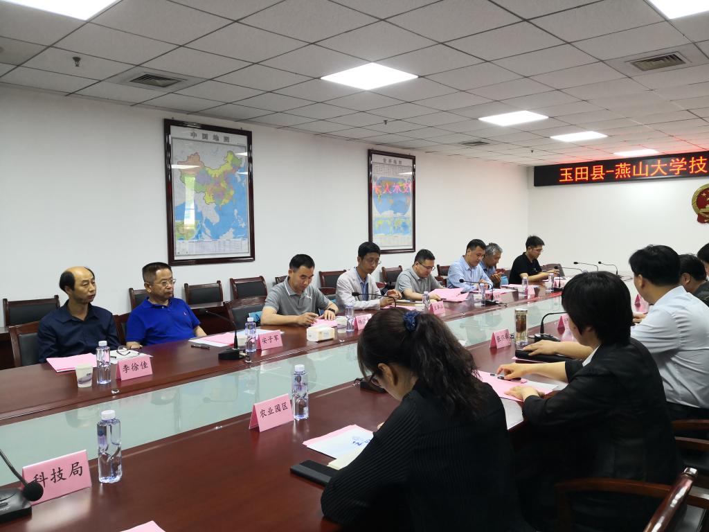 为发挥校企合作优势,助力社会经济发展,2021年6月10日,PA集团官网等单位共计10名教师赴玉田县政府及相关企业开展交流对接活动。玉田县副县长张怀举出席了会议,参会的人员主要包括县科技局主要及主管负责同志,组织部人才办、经济开发区、农业园区相关领导,以及玉田县15家相关企业负责人。