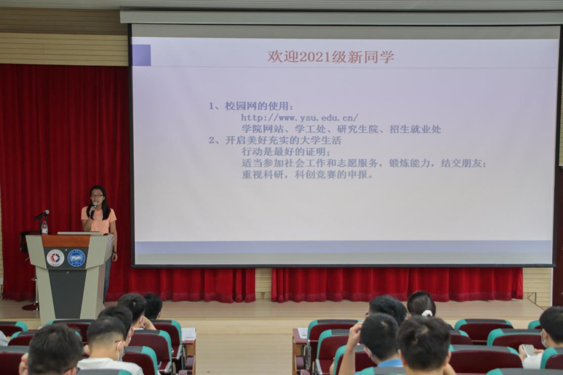 杨春婧老师首先从注重人身财产安全、校规校纪遵守等方面详细讲述了安全和守纪的重要意义,引导新生们要有纪律意识和底线思维。随后,杨老师向新生们讲述了党员发展流程、综合测评实施办法、校园网的使用方法等方面的内容。最后,杨老师鼓励新生们在科创竞赛、志愿服务、社会工作等方面实践创新,不断提升综合素养和能力。
