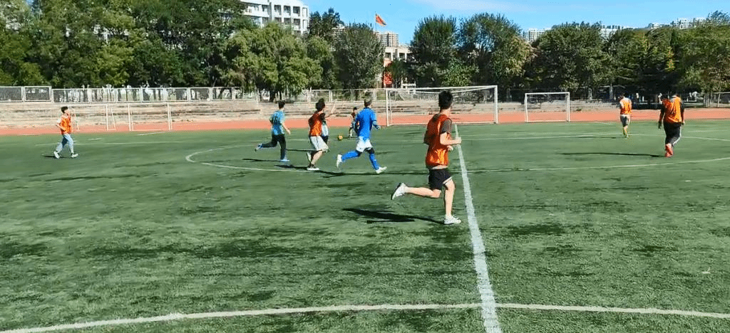 赛前,教师队和新生队分别身着整齐的绿色和橘色队服进行现场热身。比赛伊始,双方都处于试探阶段,随着逐渐的了解和熟悉,比赛逐渐激烈。