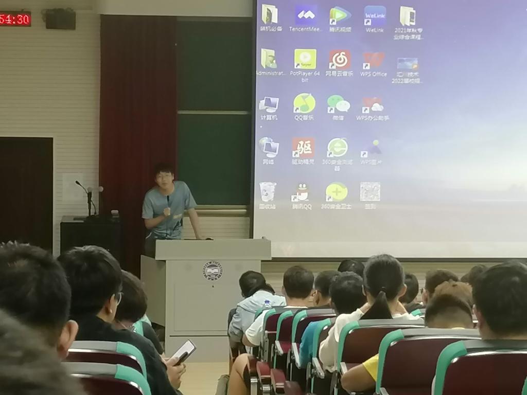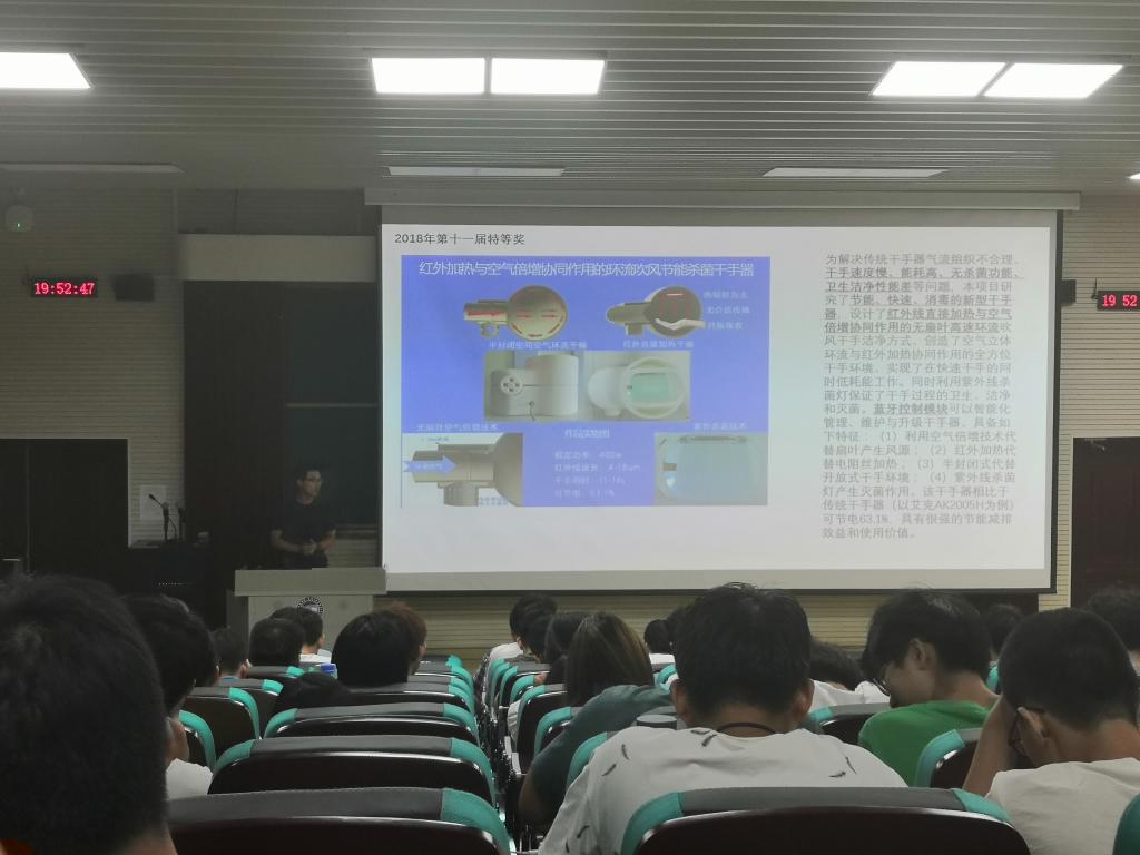 能源系其他各位老师也陆续进行了发言。许宏鹏老师展示了许多获奖作品的实物图片,说明节能减排大赛与我们的生活息息相关,鼓励同学们踊跃参赛,并表示愿意为有参赛意向的同学提供咨询,解答相关专业问题。李苏宁老师从多方面为同学们提供了参赛建议与选题思路,激发了同学们的参赛意愿。武朝然老师通过自己带队参赛的实际经历,讲述了参赛时遇到的困难,分享了自己解决问题的心得。