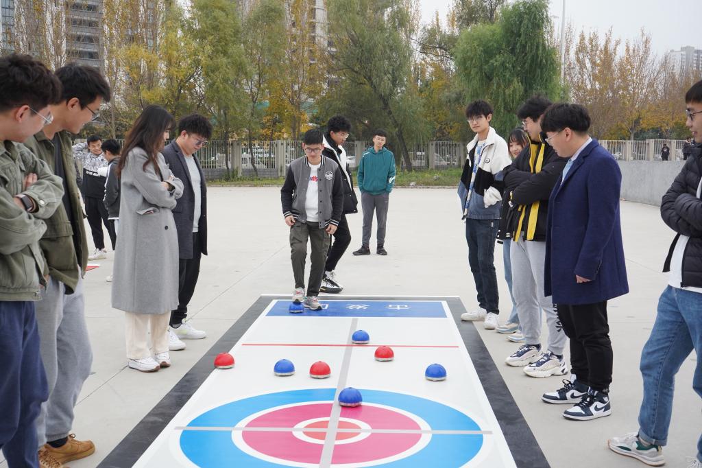 本次体验赛分为旱地冰壶和冰蹴球两项比赛。两项体验项目同时开展,先由两名指导同学介绍模拟冰壶、冰蹴球的场地及设备要求,比赛规则,竞赛要求等事宜,并对冰蹴球及旱地冰壶的技术动作进行了简单的讲解和示范。随后,同学们踊跃地进行了赛前体验。两轮体验过后,大家对于项目的实操技巧有了认识和了解。