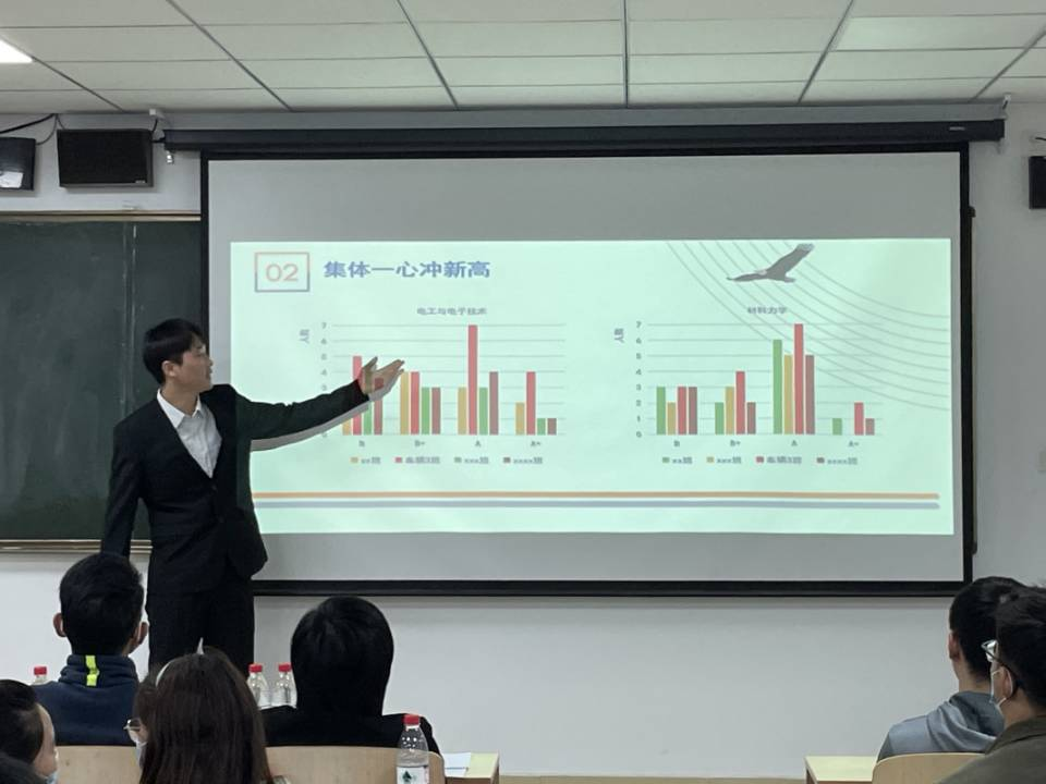 “先进班集体”评比答辩由2018级车辆工程(卓越计划)1班答辩代表方睿祺拉开序幕。该班科研成果连周排,竞赛奖状隔月新。班级累计获专利21人次,国家级赛事获奖25人次,省级获奖25人次。该班还建立微信公众号记录同学们的点点滴滴,收获与成长。敢吃苦,有温度是2018级车辆工程(卓越计划)1班全体同学的真实写照。