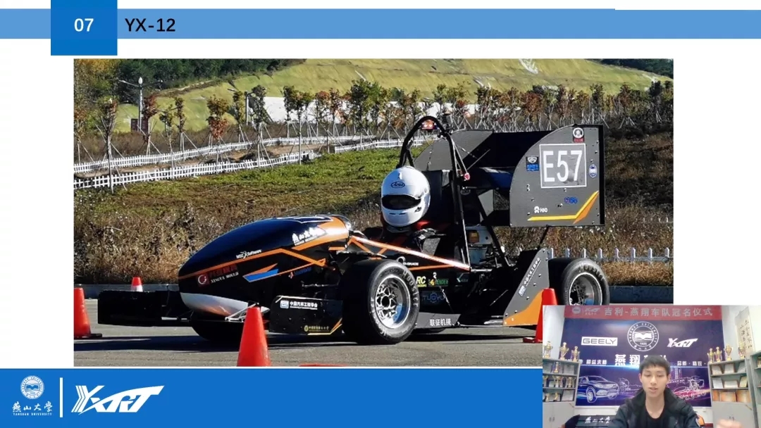 陈森重点介绍了今年10月发布的YX-12新车,详细讲解了赛车的构造、性能和自主设计部分
