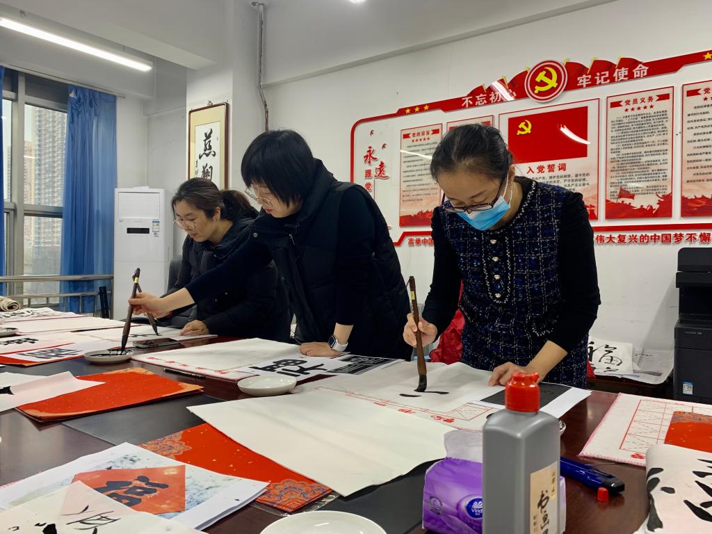 参加活动的教工挥毫泼墨,用心书写每一个笔画、每一个汉字,现场弥漫着浓浓的笔墨之香。一幅幅精致的“福”字作品,表达了大家对新的一年的美好憧憬与希冀。花放千支鸟栖树,墨落一滴水成波。此次书法艺术体验活动以墨会友,书写美好生活,感受传统文化魅力,在艺术创作中提升了教工们的获得感和幸福感。