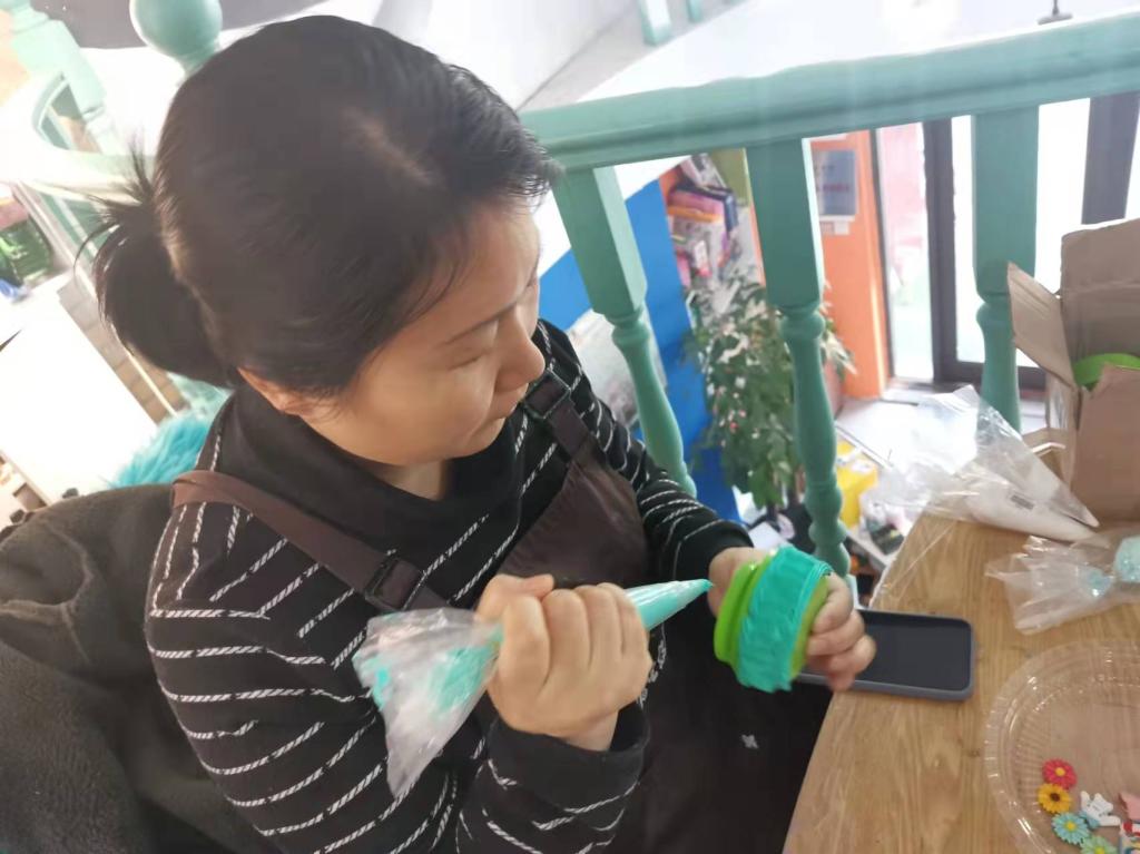 女职工认真进行DIY创作