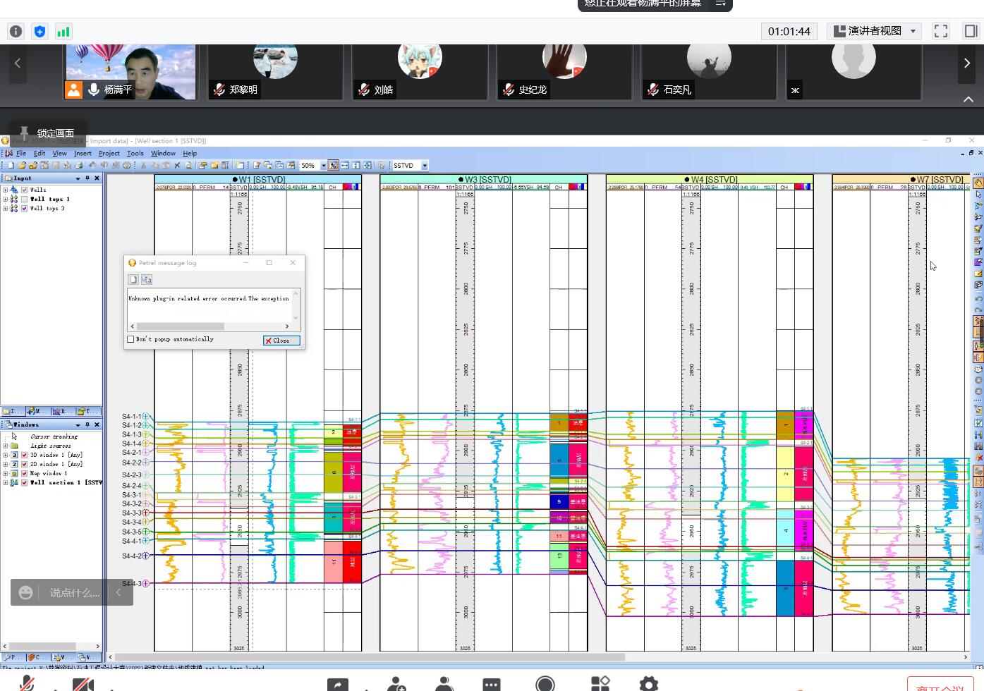 杨老师还在讲座中实际操作了地质建模过程,展示了在建模中可能遇到的问题(如井位矛盾、分层情况、断层模型建立、构造面调整等),为同学们设计方案的数据基础提供了有力支持。