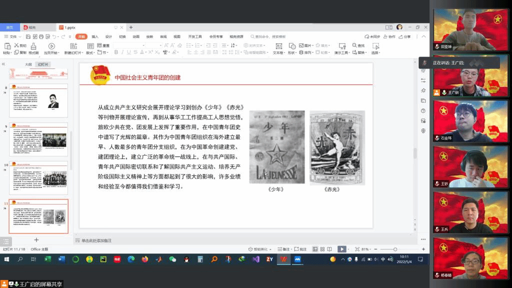 2022年,我们党将召开第二十次全国代表大会;2022年,也正值中国共产主义青年团成立100周年。100年来,共青团在党的领导与关怀下茁壮成长。为传承“五四精神”,团结引领广大团员青年坚定跟党走、建功新时代,PA集团官网各团支部以线上学习的形式展开了丰富多彩的团日活动,并邀请辅导员老师参与其中。