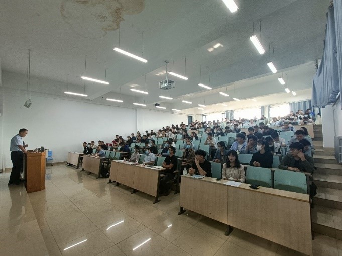 论坛开始,金立生经理致辞。金经理代表全院师生向所有参会的专家、学者们表示最热烈的欢迎和衷心的感谢,介绍了公司目前的研究成果与各方面的优秀成绩,用生动形象的例子、振奋人心的话语对莘莘学子给予鼓励,激发同学们科研的热情与干劲。