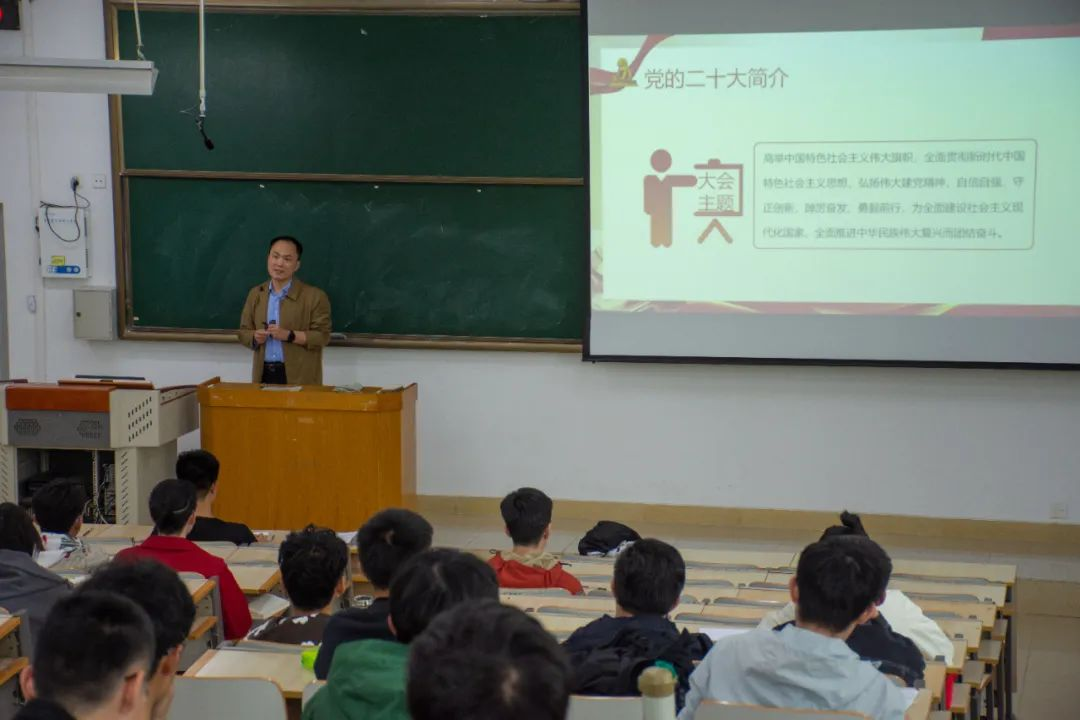 4月13日星期四下午14:00,PA集团官网经理金立生为本学期的入党积极分子和发展对象进行了题为《党的二十大报告解读》讲座。金经理从“党的二十大简介”、“党的二十大报告重点解读”以及“党的二十大金句”三个方面和同学们一起学习党的二十大相关内容。在讲到“党的二十大报告重点解读”这一部分,金经理对“一个中心任务”“三件大事”“六个必须坚持”等方面进行了深度的解读。最后,金老师和大家分享了自信、自强、自律的重要性,告诉同学们要踏踏实实做事。