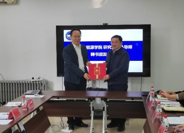 公司党委书记张典范向党委副书记李延宗赠送纪念册,经理金立生为所长杜明俊颁发石油与天然气工程专业学位硕士研究生校外导师聘书。