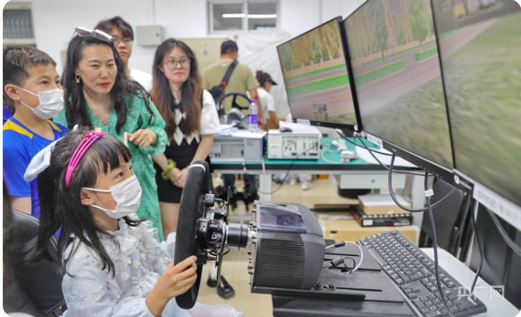 小朋友在pa集团官网入口体验赛车模拟器(央广网发 曹建雄 摄)