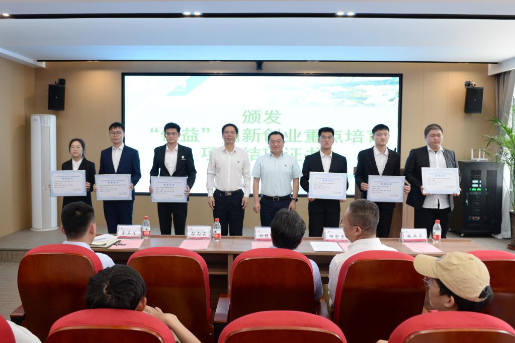 张向前主任、张典范书记颁发2022年“优益”创新创业重点培育项目结项证书。