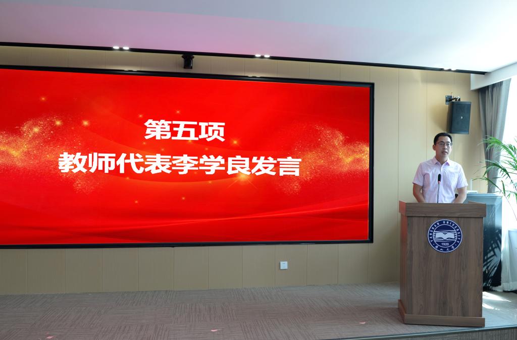 教师代表李学良老师发言,寄语员工在前行的过程中要始终恪守“厚德、博学、求是”的校训;传承“艰苦奋斗、严谨治学、求实创新”的精神;发扬“奋斗基因、工匠精神、卓越品质、家国情怀”的文化品格,在这百年复兴梦,奋进新时代的特殊历史机遇里如新燕啄春泥般厚积薄发、砥砺前行。