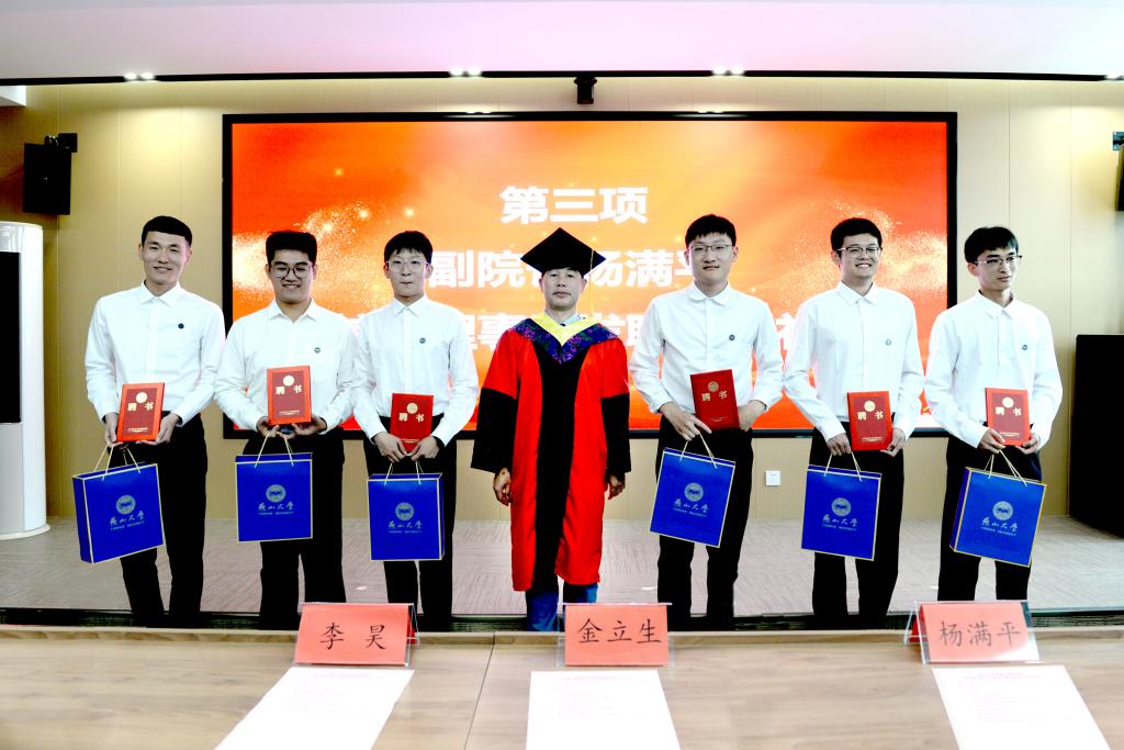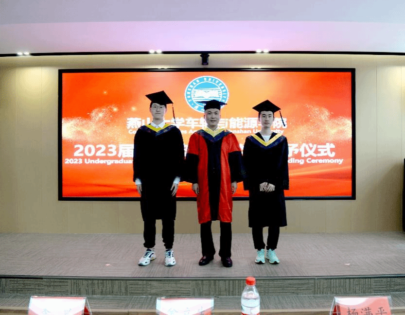 在授予学位环节,经理金立生、副经理杨满平、副经理李昊为逐一为本科毕业生拨穗并合影留念,同时他们为毕业生送上了饱含深情的勉励和祝福,激励毕业生在未来的人生道路上勇于拼搏,努力实现人生梦想。