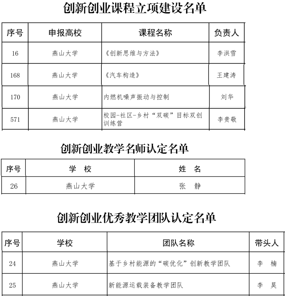 近日,河北省教育厅公布了2023年度创新创业课程、教改项目立项建设名单和创新创业教学名师、优秀教学团队认定名单的通知。公司李洪雪老师的创新创业基础课程《创新思维与方法》、王建涛老师的专创融合课程《汽车构造》、刘华老师的专创融合课程《内燃机噪声振动与控制》、李贵敬老师的创新创业训练营课程《校园-社区-乡村“双碳”目标双创训练营》四门课程立项建设创新创业课程;张静老师被认定为河北省创新创业教学名师;李楠老师作为带头人的“基于乡村能源的‘碳优化’创新教学团队”和李昊老师作为带头人的“新能源运载装备教学团队”被认定为河北省创新创业优秀教学团队.