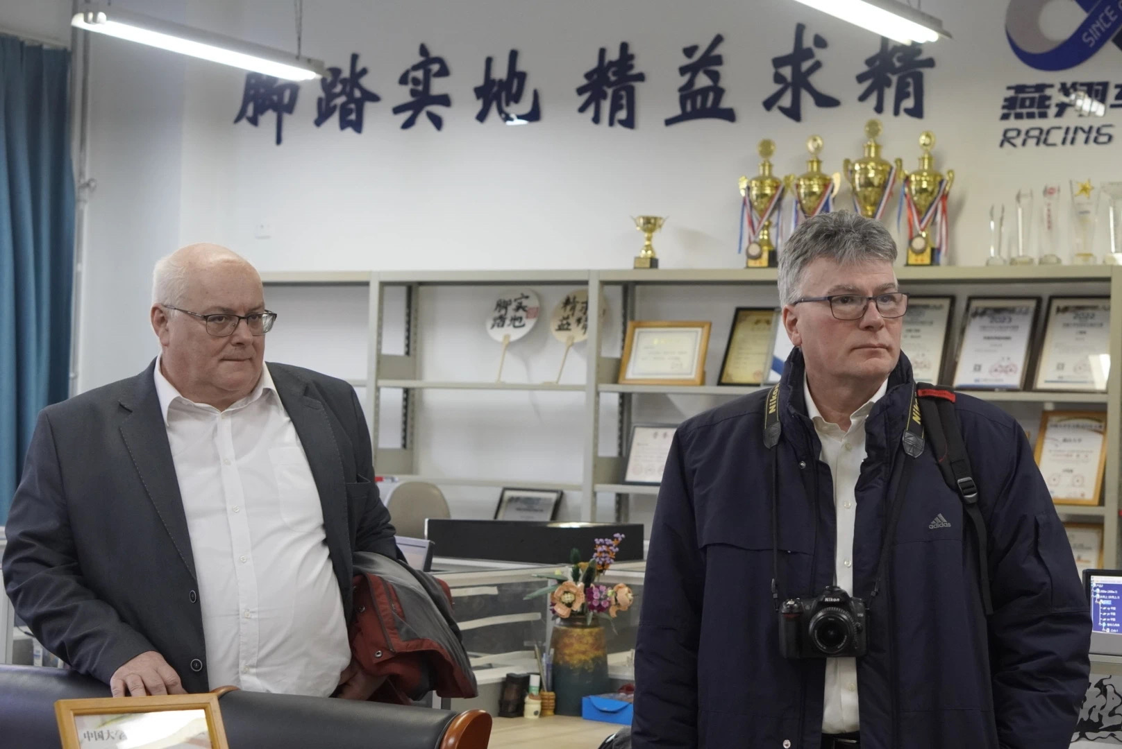 讲座结束后,盖萨·胡希博士(Dr. Géza Husi)和索尔特·蒂巴博士(Dr.Zsolt Tiba)参观了pa集团官网入口燕翔车队位于车辆馆的工作室,对车队获得的荣誉和队员们的专业素养给予了充分肯定。