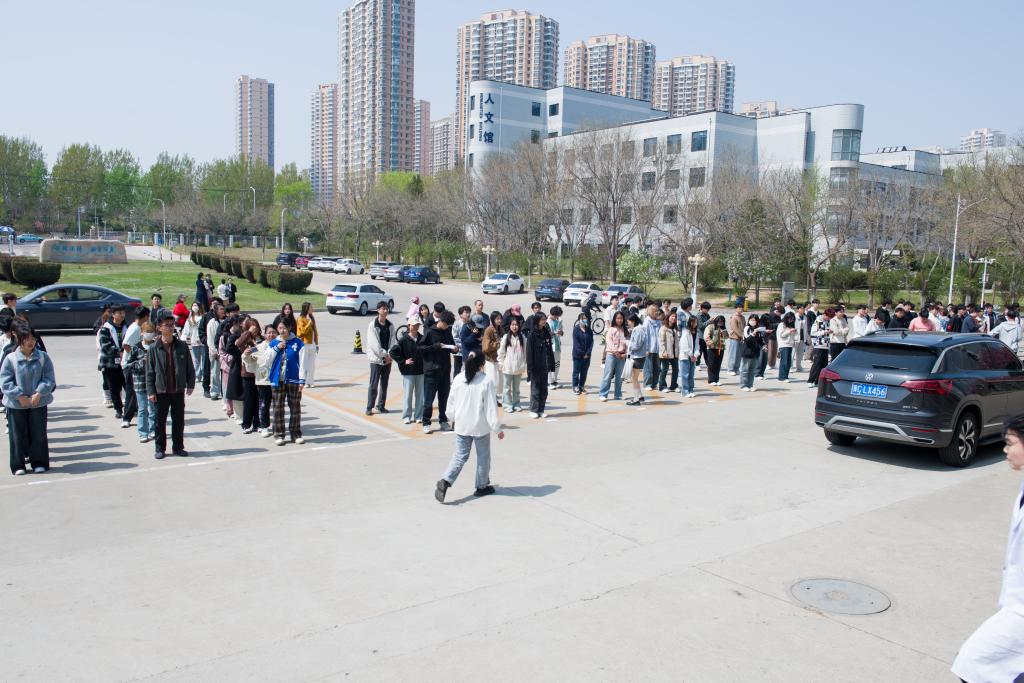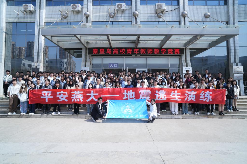 参与“平安燕大—地震逃生演练”活动的师生合影