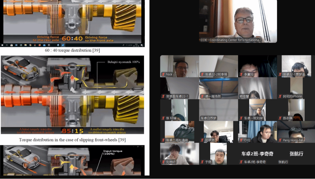 在公司国际化工作方面领导和老师的共同努力下,《汽车构造+理论》扩展系列外教课程于2024年11月27日-2024年12月6日期间顺利的在线上开展。《汽车构造+理论》扩展外教课程的主要授课对象为公司车辆工程(卓越计划)2022级所有本科生,授课教师为匈牙利德布勒森(Debrecen)大学的Zsolt Tiba教授。Tiba教授是德布勒森大学工公司副经理,国际办公室主任,主要研究方向为机械工程、机械制造,匈牙利圣伊斯特万大学博士,曾任DEFÉM公司机械建造师,德国GKN万特赛有限公司研究员,目前是德国科隆应用技术大学的客座教授。