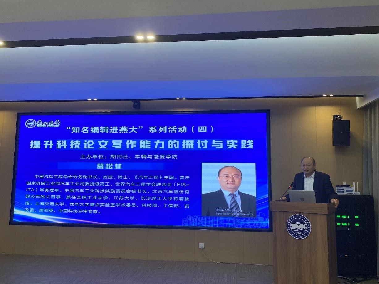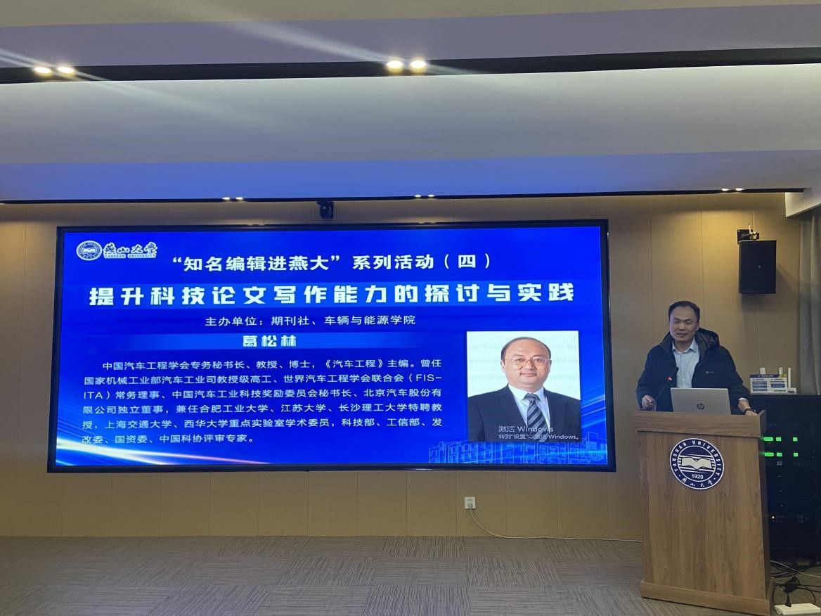 12月16日,“周末专家河北行”暨“知名编辑进燕大”系列活动——《提升科技论文写作能力的探讨与实践》专题讲座成功举办。《汽车工程》主编、中国汽车工程学会专务秘书长葛松林,《汽车工程》编辑部主任、中国汽车工程学会副秘书长陆丽俐应邀作专题报告。本次活动由期刊社和PA集团官网共同举办,PA集团官网经理金立生出席并致辞欢迎,参加活动的有PA集团官网副经理唐先智以及公司百余名师生。讲座由期刊社副社长弓洪玮主持。