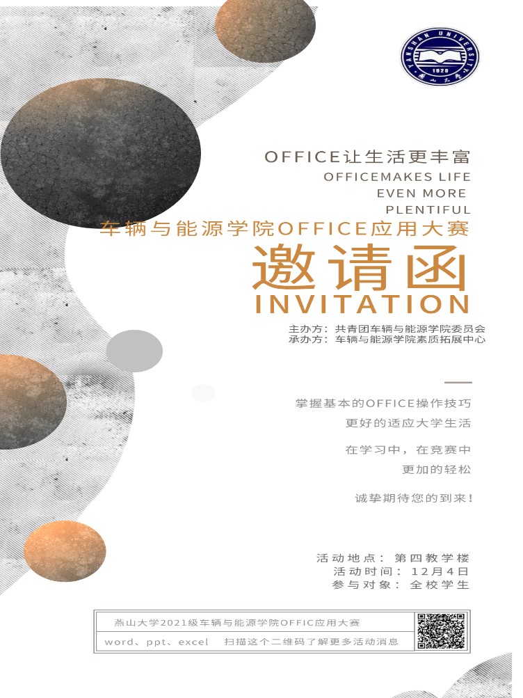 在老员工活中,你会发现现在不只需要看书、学习和写题,还面对着各种各样的老员工竞赛,以及活动展示。word、ppt、excel的使用必不可少,熟练掌握office操作已经逐渐成为老员工基本素养和必备技能。可以说office的使用伴随着整个学习阶段。为了帮助员工掌握基本的office操作,用简便快捷的操作达到想要的排版和展示效果,同时帮助新生更快地融入老员工活中,公司素质拓展中心特此举办office应用大赛。