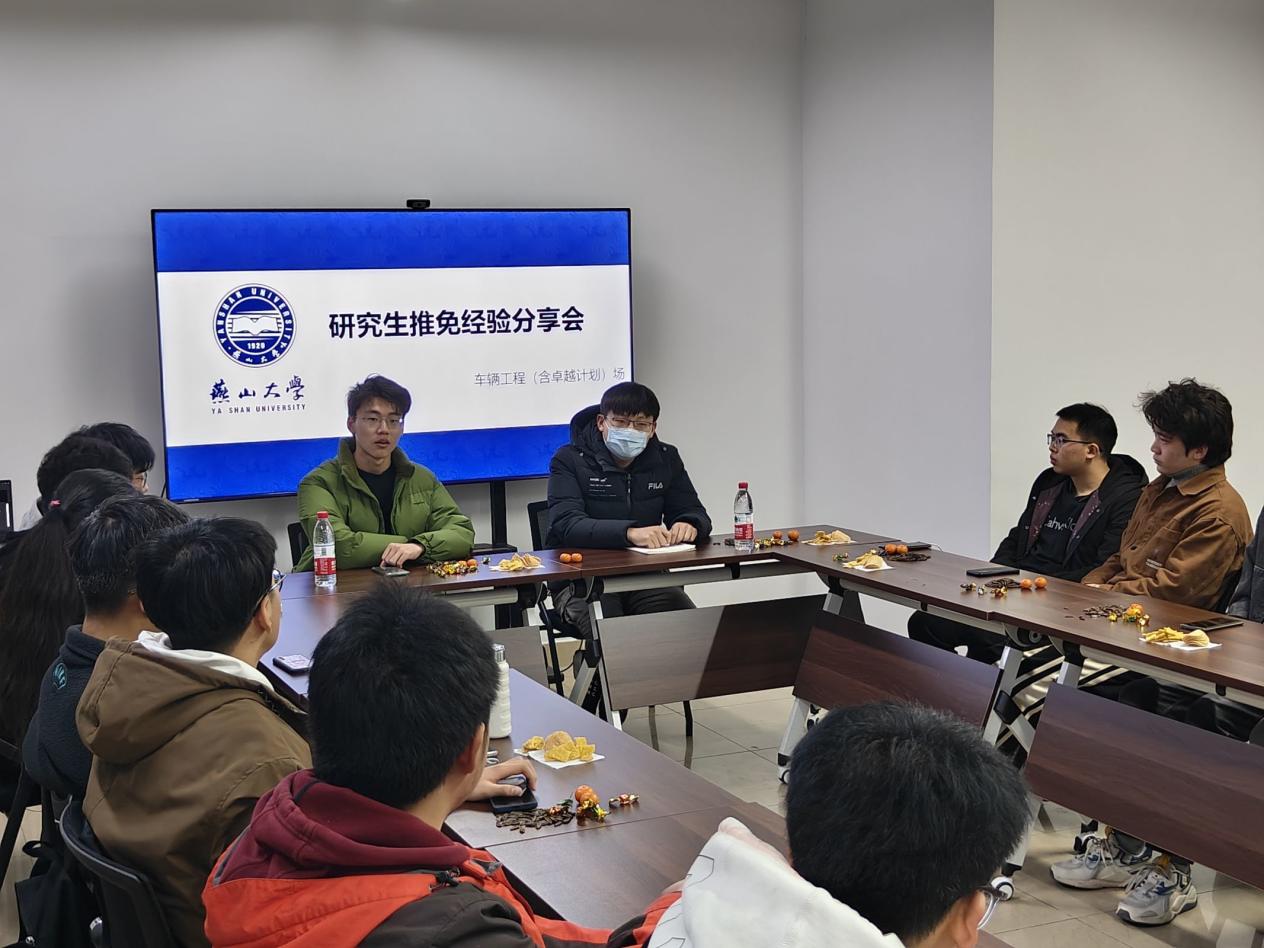 2023年3月18日18:10,PA集团官网学业发展指导中心在车辆馆303开展“薪火”领航系列讲堂--研究生推免经验交流会。本次交流会以沙龙的形式举办,2019级车辆工程1班杨帅学长与2019级车辆工程(卓越计划)2班张乾成学长受邀进行分享,车辆工程(含卓越计划)共20余人参加了此次交流会。