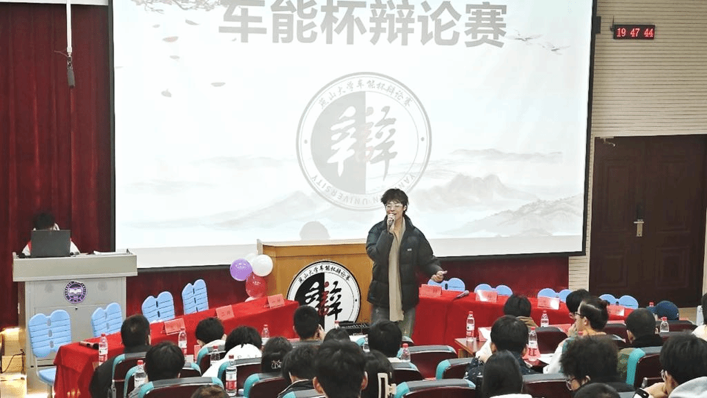 此次“车能杯”辩论赛共分为表演赛和正式决赛两大环节,同时有幸邀请到海翔艺术团在中场和结尾环节为大家带来歌曲表演,整场比赛共历时2小时。