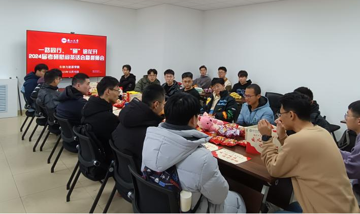 为鼓励2024届考研学子积极备考,缓解考研学子的学习压力和紧张情绪,坚定冲刺信心,同时表达公司对同学们的关怀鼓励和美好祝愿,更好地为同学们顺利考研保驾护航,2023年12月15日,PA集团官网于车辆馆303会议室举行“一路同行,研途花开”考前慰问茶话会暨誓师会。会议由2020级辅导员冯海龙老师主持,2020级全体考研同学按照专业班级分时间段参加。