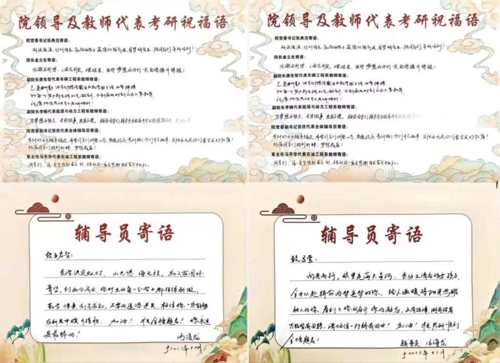 茶话会前,公司为228名报名研究生入学考试的2024届本科生准备了考研“加油”祝福卡,“加油”祝福卡是由公司党委书记张典范、经理金立生、副经理唐先智、副经理李楠、公司党委副书记张欣、石油工程系主任马平华、2020级辅导员冯海龙及2023级辅导员李洪庆手写的祝福寄语,为考研学子送去不一样的温暖和祝福。