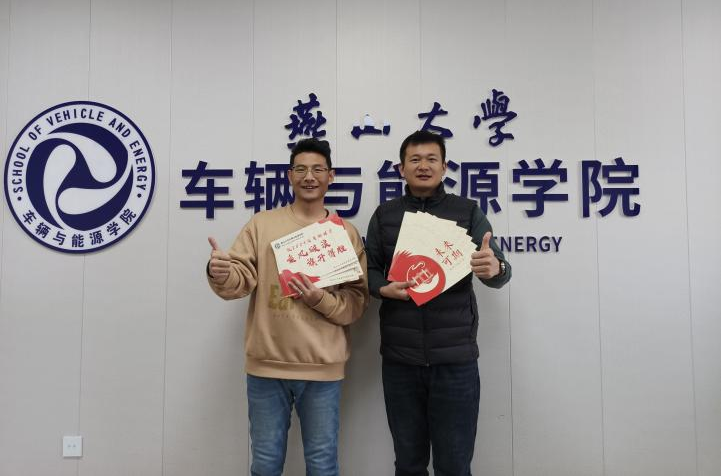 冯海龙和李洪庆手持祝福卡合影