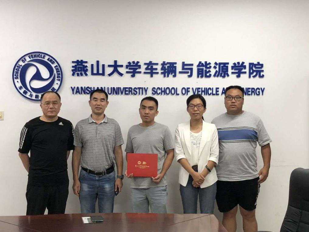 公司向陈华诚员工赠予校庆纪念品并合影留念。